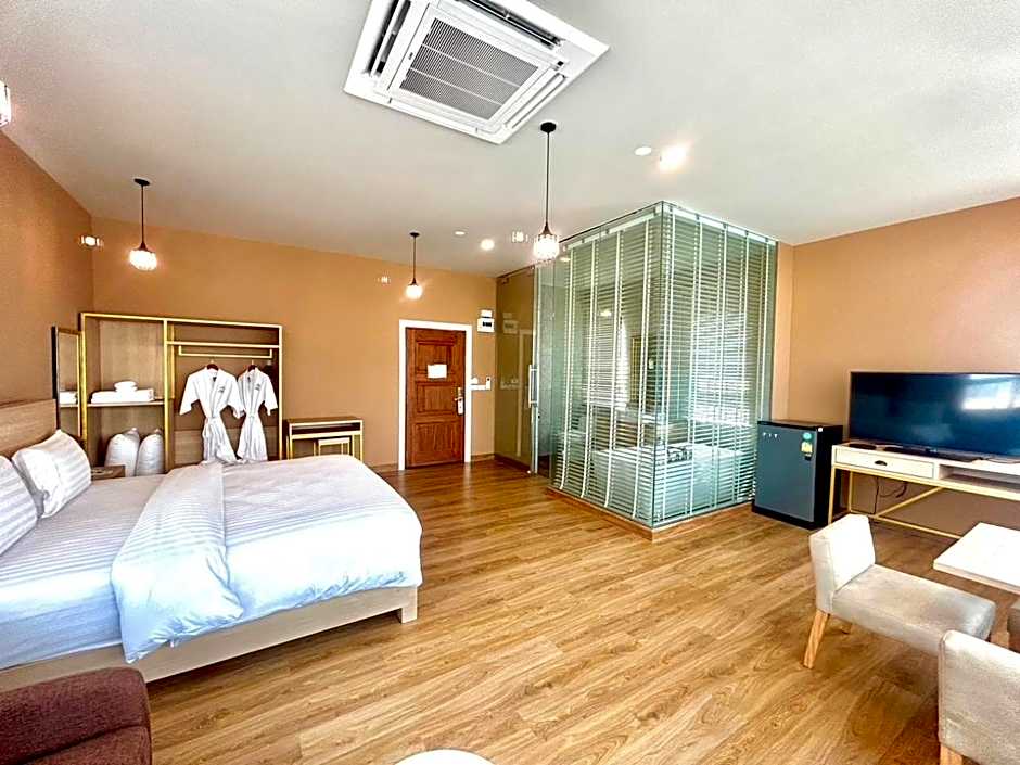 Air conditioned room comes with an private bathroom and a private balcony. Room has a cable flat-screen TV and a refrigerator.